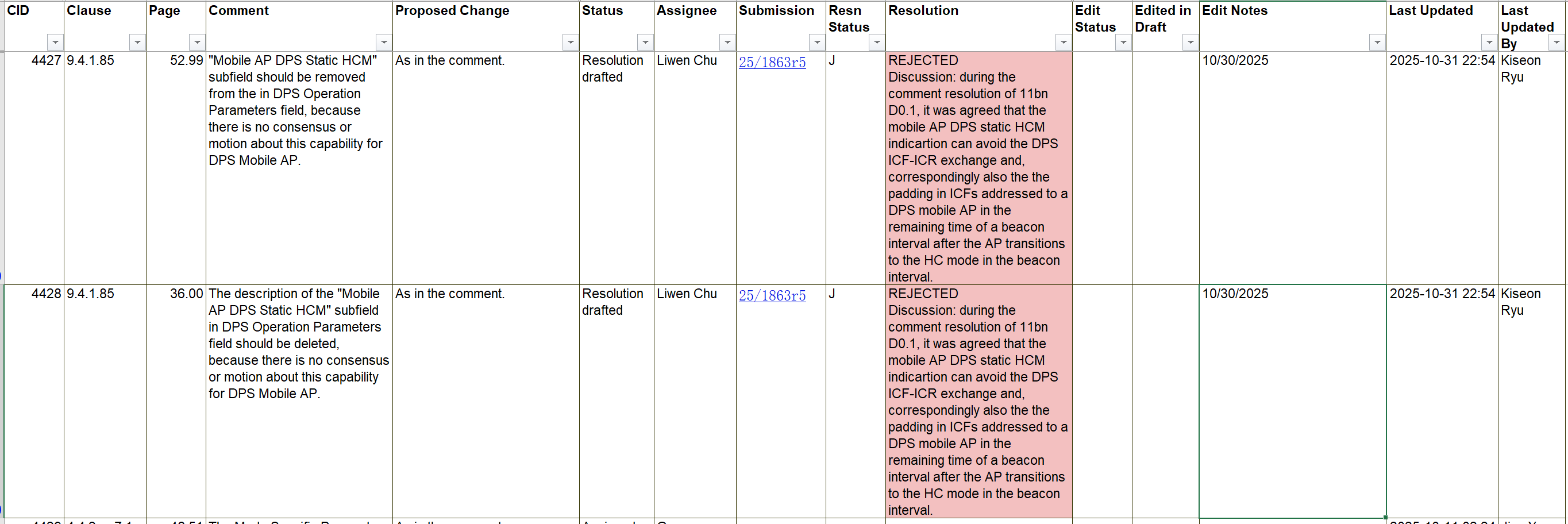 As Ross mentioned, those 2 CIDs are “need further discussion” and not in the motion list. “Resolution Drafted” for them were automatically generated when updating the comment database. Yajun, you don’t worry about it.