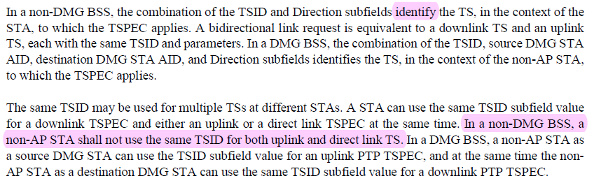 traffic that concurrently use the same additional TID shall belong to the same access category' in P271L18 of D1.1 Is the above case allowed? However, if different SCS streams can not use same addtional TID, please ignore my above question and a further question as below: 'All traffic that concurrently use the same additional TID shall belong to the same access