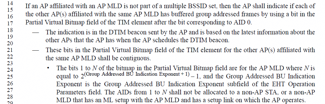 If an AP is affiliated with an AP MLD that has at least two affiliated APs where each of them is a member of a multiple BSSID set, the AP ID value assigned by any AP affiliated with that AP MLD shall be greater than 2m,