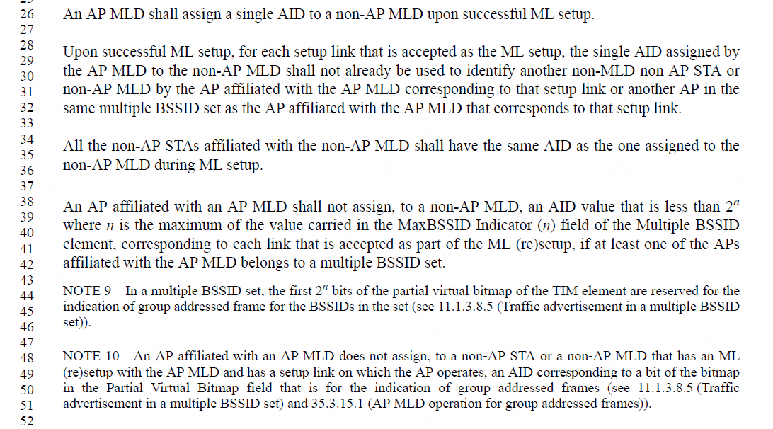 Hello Chun Sorry for missing this email. When you presented your contribution yesterday, I found the following email. In the call, I pointed out we also need consider the AID assigned to other AP in the same AP MLD, similar to Multiple BSSID case. Please refer to the following text (NOTE 10) in
