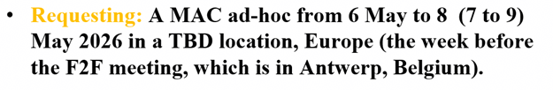 OriginalFrom: 顾祥新(XiangxinGu) <000046f9987a2d10-dmarc-request@xxxxxxxxxxxxxxxxx>Date: 2026年02月07日 11:54Subject: [STDS-802-11-TGBN] 答复: [STDS-802-11-TGBN] Suggest for May ad hoc meetingSecond Yunbo’s suggestion.