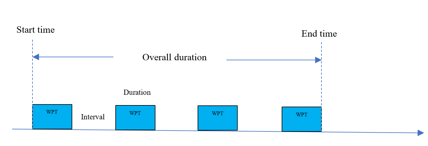 - Control information that is sent from the AMP AP to the AMP Energizer relating to the WPT waveform may include reconfiguration of WPT related parameters, e.g., interval/duration reconfigured