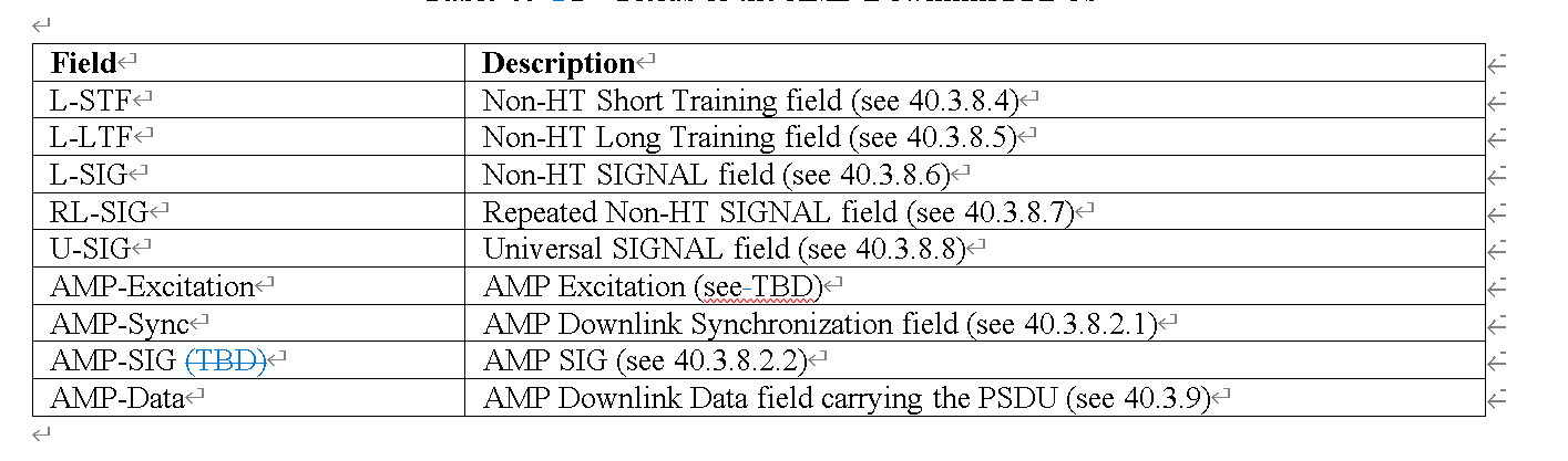 Bo and Yinan, Please advise for the Table below for the AMP-Excitation Field if we should reference TBD or a specific subclause. I will update the PDT based on your recommendation. Thanks, Steve From: Steve Shellhammer <00002a5699263b15-dmarc-request@xxxxxxxxxxxxxxxxx>