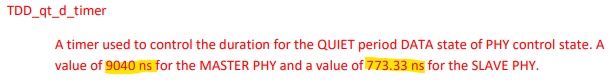 Baseline_Text_for_TDD_PHY_V1.1_07_14_25.pdf the quiet periods are given as The quiet period of 9040ns and 773ns are used for the quiet period in the calculation of the propagation delay in the table above. According to tables 200-5 and 200-6 on page 31 of