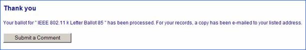 CONFIRMATION WEB PAGE: You will also receive a confirmation web page for your vote. If you are submitting comments, click on the “Submit Comments” button. |