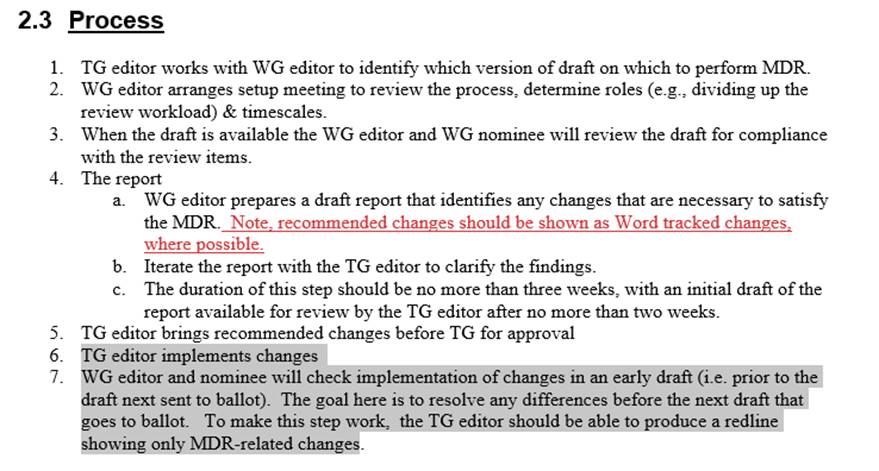 NOT CLICK ANY LINKS OR OPEN ATTACHMENTS UNLESS YOU RECONGNIZE THE SENDER AND KNOW THE CONTENTS ARE SAFE. ALSO BE CAUTIOUS WHEN ‘REPLYING TO ALL’. Hello Yujin, If you could produce a D3.1 with most of the MDR comments resolved that would be great. We could check that. This would be an interim draft – not a draft that goes to ballot. Any further changes we could action in the MDR report and then check with the D4.0 that will go to ballot. The MDR process will not delay you from going to ballot. We haven’t found anything serious enough to hold up your draft. -Robert From: Yujin Noh <Yujin.Noh@xxxxxxxxxxxx>