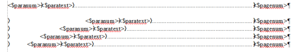 Then lines in the TOC that fit on a single line are ok, but lines that are too long to fit on a single line have the page number at the end of the heading text rather than on the right as per your example. To fix this, change each of the lines to end: