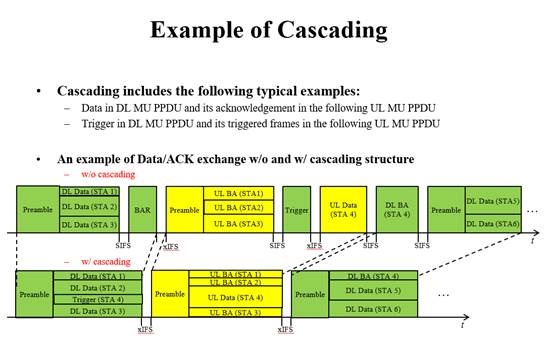 I think your concern is that the definition of MU cascading in the spec is not clear. I would like to hear your further opinion and other people’s opinion An MU cascading sequence is a frame exchange sequence between an AP and one or more non-AP STAs carried in an HE MU PPDU in the downlink and HE TB PPDU in the uplink and characterized by the exchange of Control,