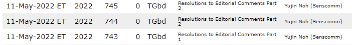 Hi Bo, and all Please add the CR documents to the agenda on May 12th. Three documents resolve 34 editorial comments.