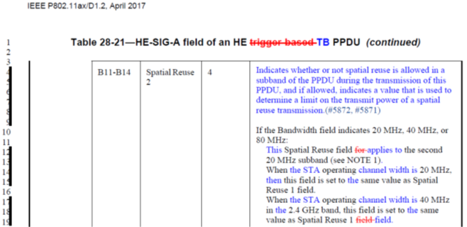 We got this wording of “the STA operating channel width is 20 MHz” from the description of the SR 2 field in the HE-SIG-A of an HE TB PPDU in the 11ax spec D8.0 and it is ambiguous. The original sentences and wording (as firstly introduced in 16/0902r3 (https://mentor.ieee.org/802.11/dcn/16/11-16-0902-03-00ax-proposed-text-changes-for-sr-fields-in-he-trigger-based-ppdu.docx) and up to 11ax spec D1.1) is the following: