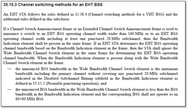 And that RX behavior does not align with what is already in 35.15.3, where it is optional for an EHT STA to make use of the Bandwidth Indication element upon receiving a CSA/ECSA