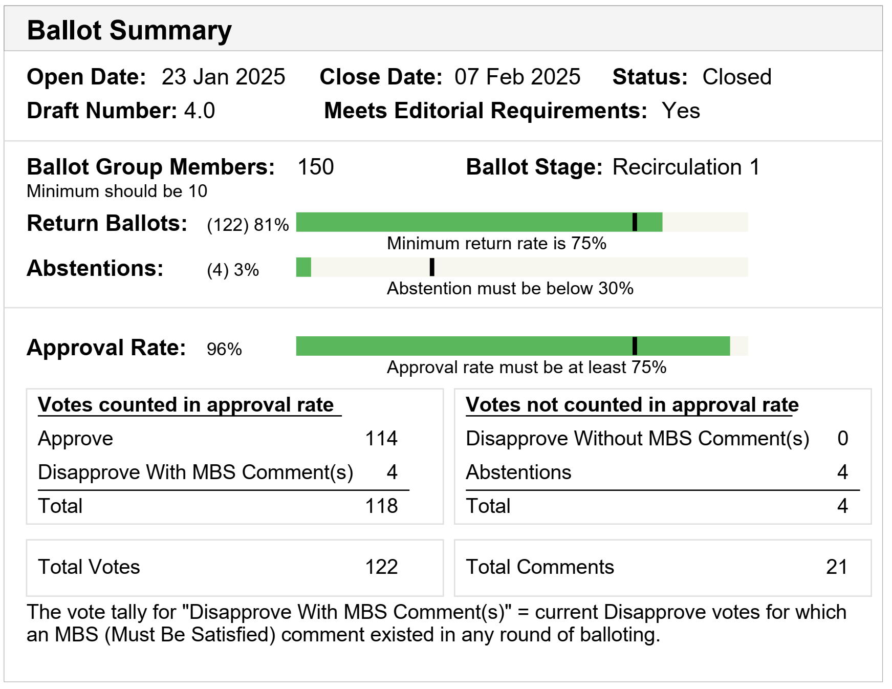 You will have seen the message from our WG chair about the results of the 11bk SA recirc 1 ballot on the reflector yesterday (result also attached below).