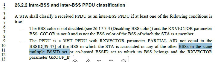 Change "BSSs in the multiple BSSID set" to "BSSs whose BSSIDs are in the multiple BSSID set" 4556.10, 4556.25, 4556.30, 4556.41, 4556.53, 4556.59 as well as 2828.1, 2838.29, 2839.17, 3347.44, 250.10
