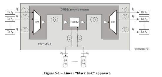 I went back to look at G.698.2 to try and better understand the definition of “black  link”  following the confusion on the call the other day, and specifically to try  an understand if the black link  only applies to a single-channel connection (SS and RS) between a single transmitter (Tx) and receiver (Rx) or whether the term black link applies  to the multitude of single-channel connectors (Ss and Rs) that run over a single “DWDM link” (using G.698.2 terminology) or what we would call “DWDM System” (using IEEE terminology).